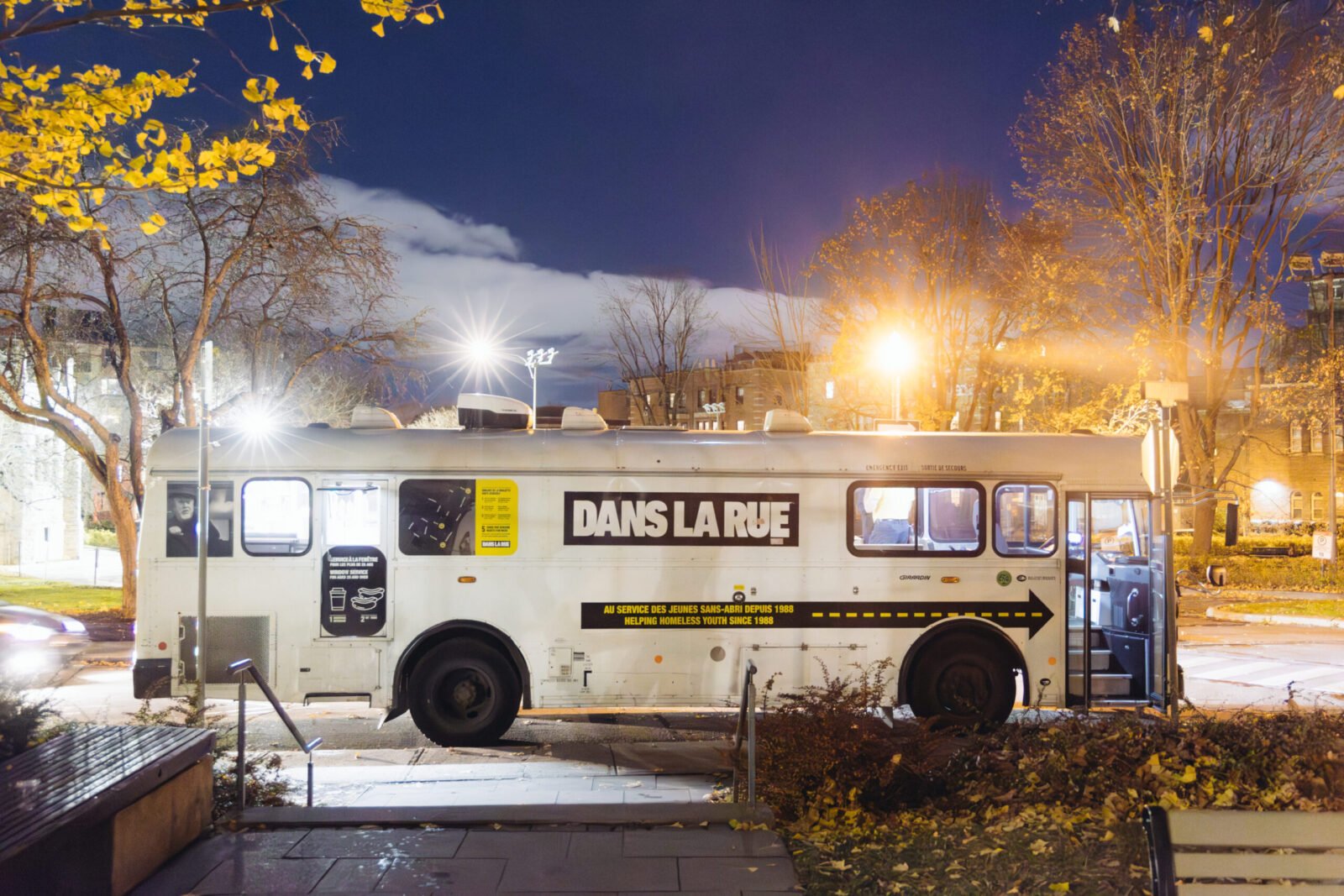 la Roulotte: un répit roulant opéré par des bénévoles où les jeunes peuvent obtenir des hot dogs, des boissons et des produits de première nécessité.
